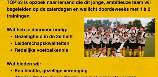 Vacature! Enthousiaste trainer/leider voor TOP'63 2