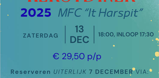 Het gezellige Kerstdiner is weer aanstaande. Op zaterdag 13 december kun je weer aanschuiven in It Harspit.