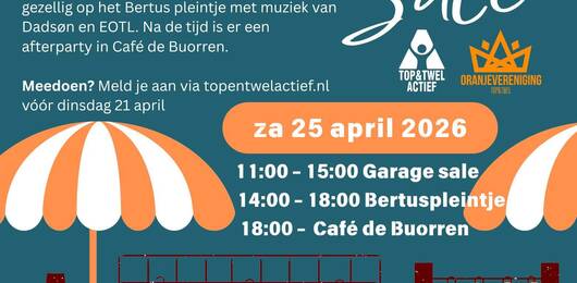 Dit jaar organiseren Top & Twel Actief en de Oranjevereniging een gezellige Garage Sale tijdens Koningsdag (zaterdag 25 april).