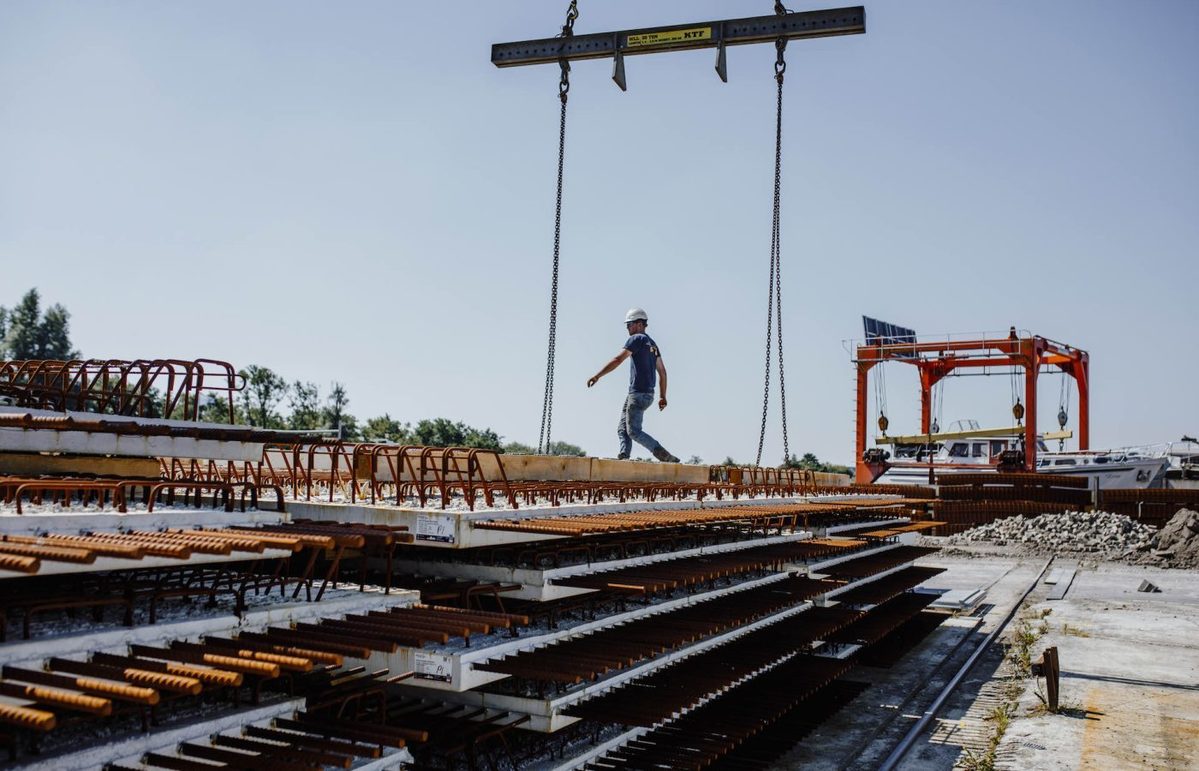 De gecurvde breedplaten worden in segmenten van ca. 5×5 meter aangeleverd met een dikte van slechts 12cm. Samengesteld vormen deze breedplaten een vloer van 140×12 meter. Na plaatsing wordt deze vloer voorzien van een druklaag die ter plaatse wordt gestort. Wat dit werk bijzonder maakt, is de maattolerantie van slechts 5mm en de esthetische eisen. De onderkant van de brugplaten zijn uitgevoerd in architectonisch beton volgens de CUR100 richtlijn.