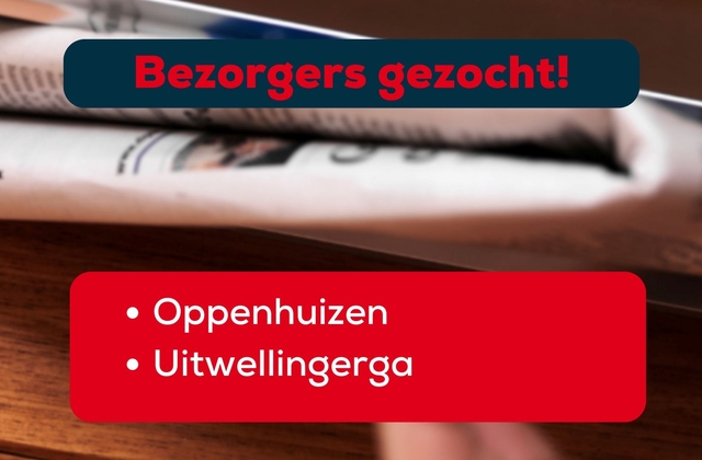 Ondertussen blijft uitgever GrootMedia op zoek naar bezorgers. Het gaat om een wijk in Uitwellingerga (155 kranten) en een wijk in Oppenhuizen (124 kranten). Ben jij of ken jij die bezorgtopper? Laat het GrootMedia weten! Mailen kan naar hvanderklok@grootmedia.nl, of bel of stuur een appje naar 06-83207480.