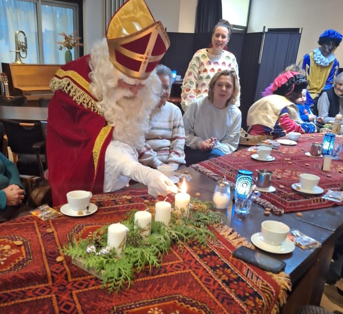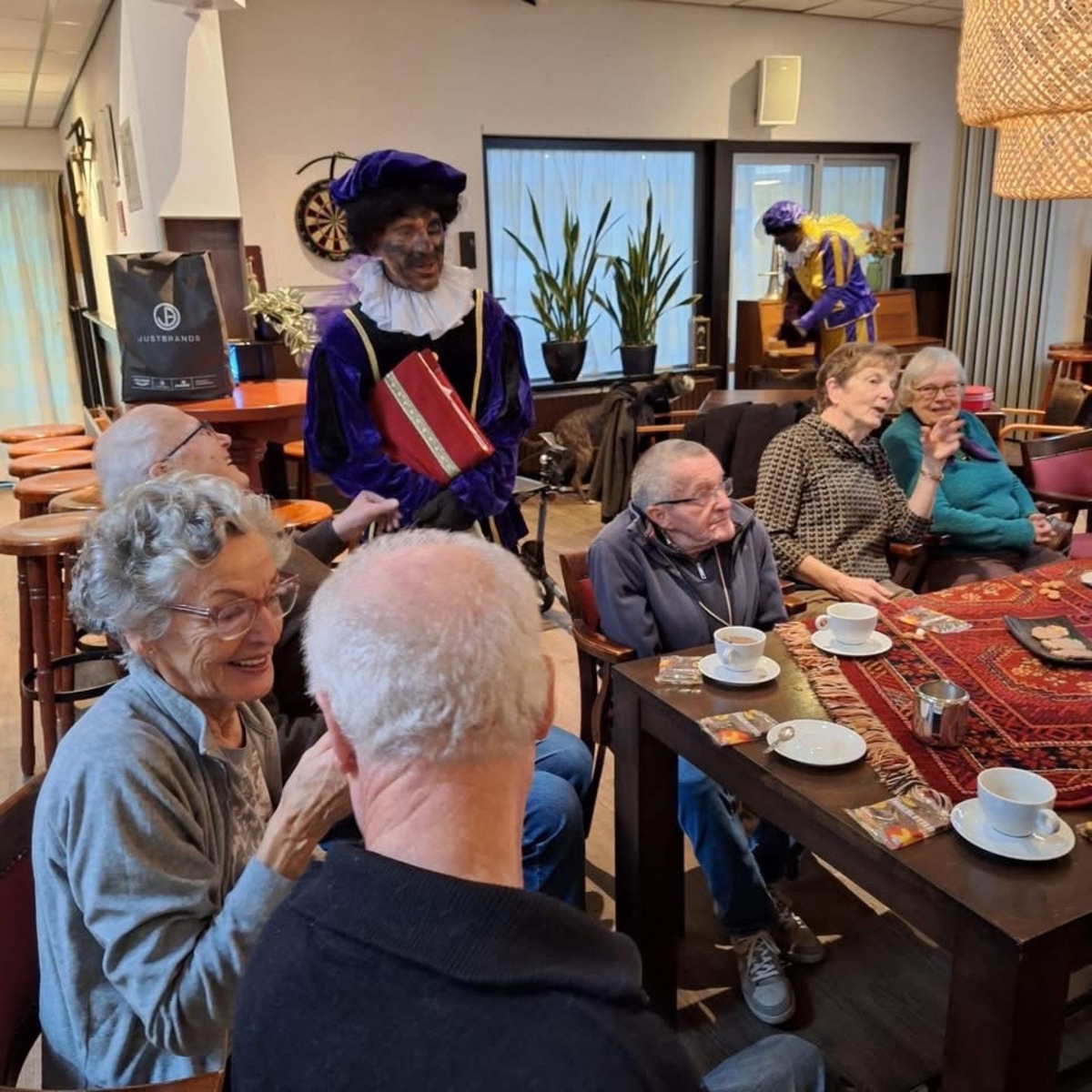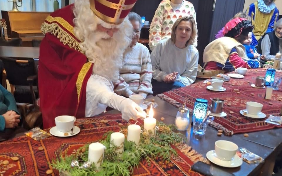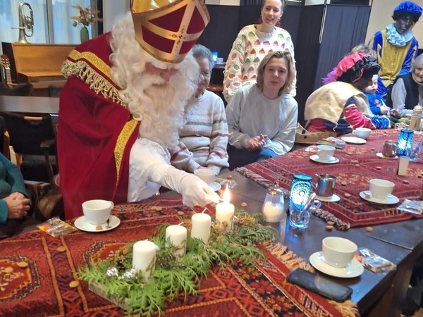 It wie feest fannemoarn oan de kofjetafel fan it Harspit, want Sinteklaas kaam mei de Pieten op besite.