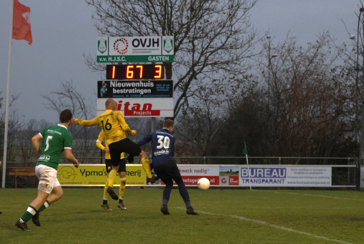 In de tweede helft ging het hardwerkende HJSC op jacht naar eerherstel, maar het beter voetballende TOP'63 hield vrij eenvoudig stand. De gasten uit Top en Twel slaagden er echter niet in het duel definitief in het slot te gooien. Twee doelpunten werden vanwege buitenspel afgekeurd, waarvan één op zijn minst dubieus. HJSC leek tien minuten voor tijd de aansluittreffer te hebben gevonden, maar ook deze goal werd om onduidelijke redenen afgekeurd. Daarmee bleef TOP'63 een hectische slotfase bespaard op sportpark Oan it Far.