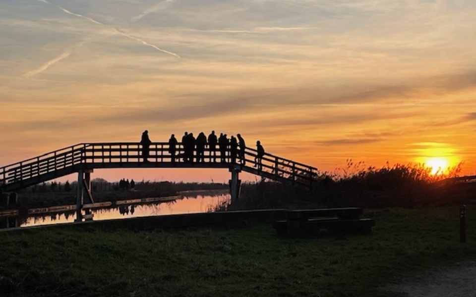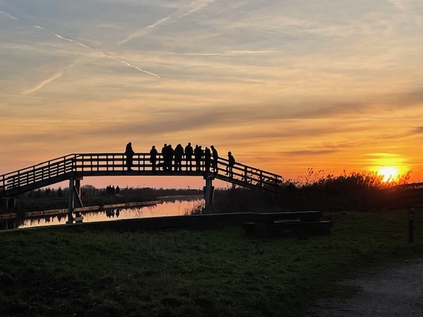 De Westpolder bij Oppenhuizen is sowieso een prachtige locatie in onze omgeving om de zon te zien verdwijnen achter het water van de Brekken. Op het bruggetje sta je op de eerste rang!