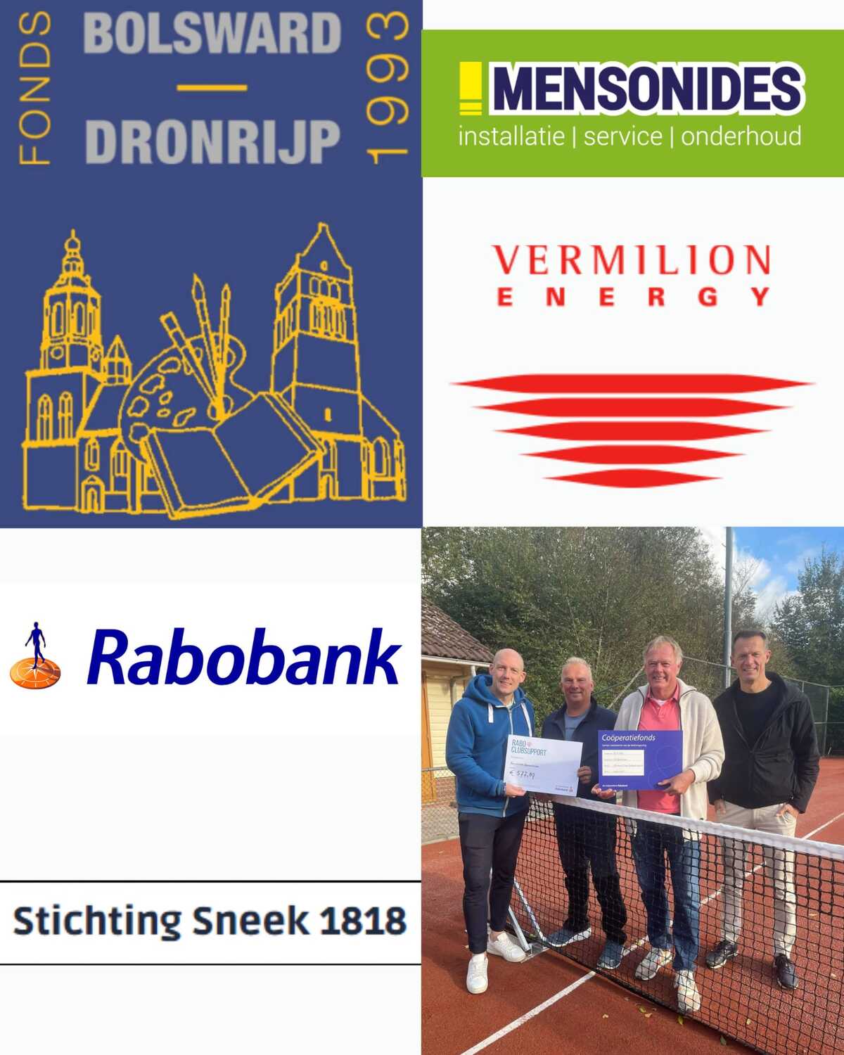 Daarnaast willen wij ook de organisaties bedanken die een finaciële bijdrage hebben geleverd. Door het is het mede mogelijk gemaakt om onze tennisbanen om te bouwen zodat er het hele jaar gebruik van gemaakt kan worden en ook de realisatie van de LED verlichting, de verwarming en warmwatervoorziening.