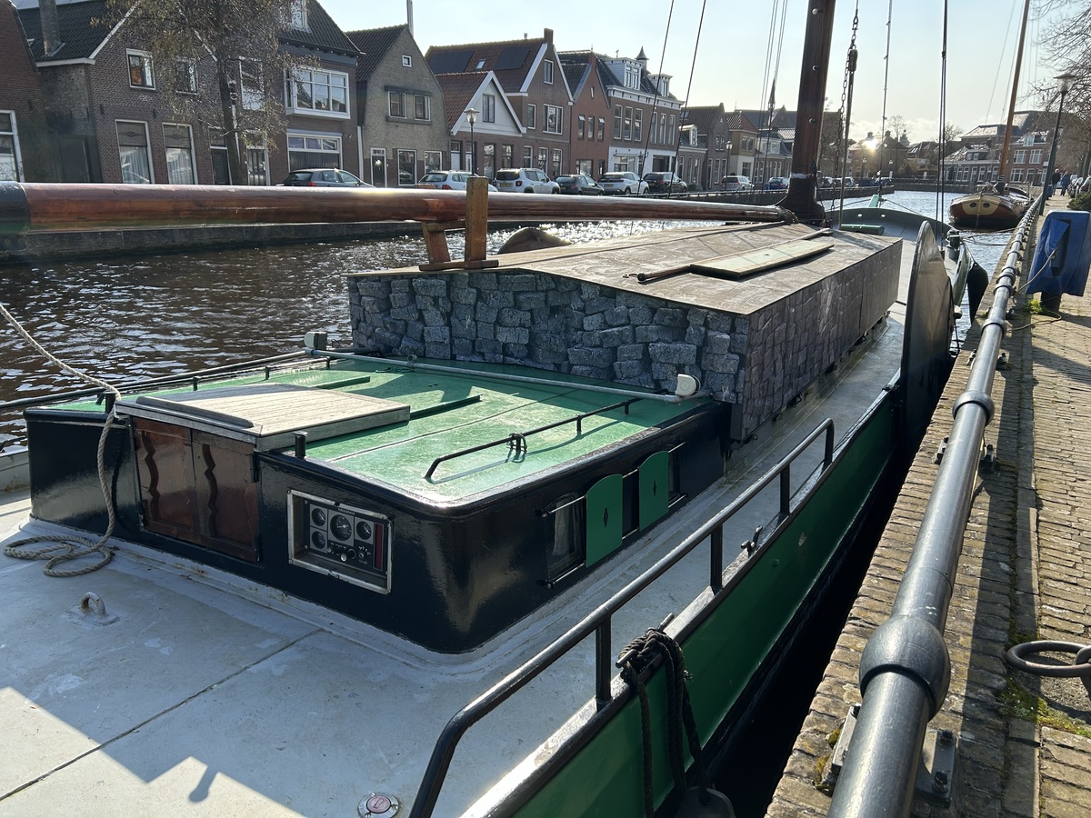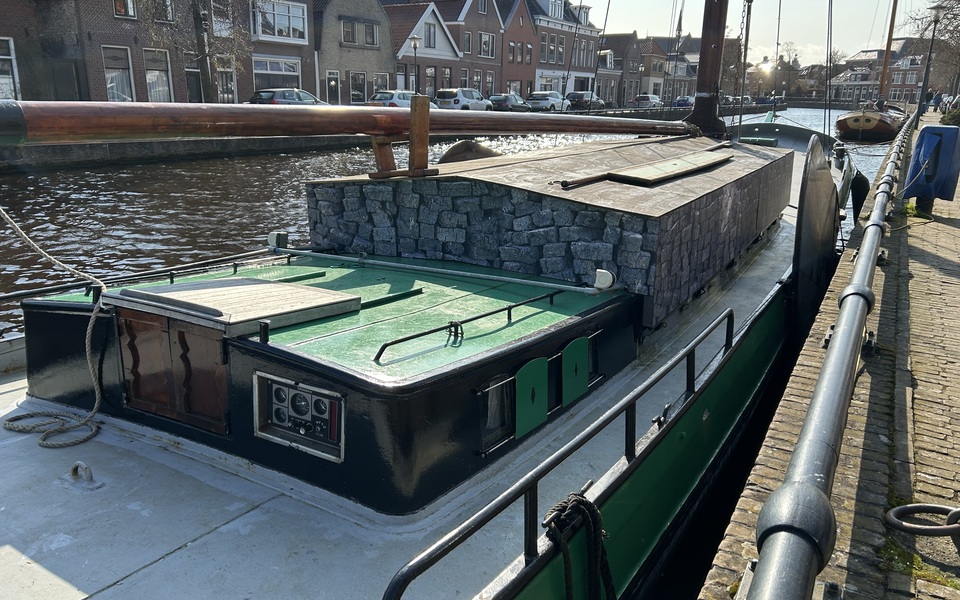 Met een zelfgemaakte opbouw van PIR-sandwichpanelen en een fotoprint van turfblokken lijkt het net echt. De opbouw staat los op het schip en is met sjorbanden vastgemaakt, zodat hij er niet af kan waaien. Volgens Overwijk komt het idee voort uit zijn familiegeschiedenis. “Myn pake wie eartiids turfmakker yn De Deelen by De Tynje. Sa kaam ik ek op it idee. It is foar de aardichheid. Sjoch it as in knypeach nei it ferline.”