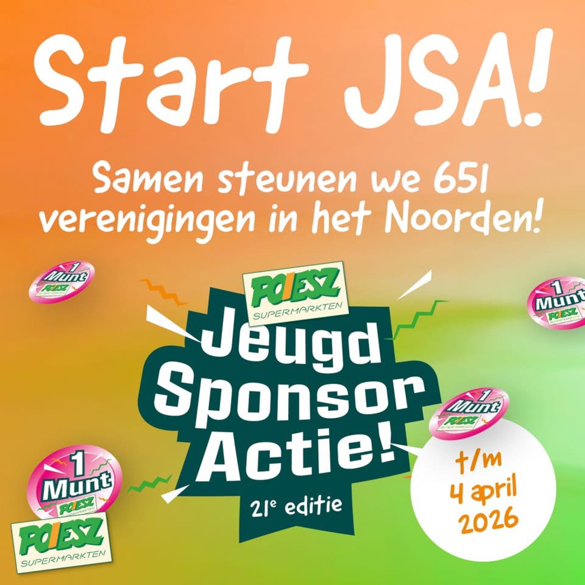 De actie loopt nog tot en met 4 april. Daarom vragen leden van de vereniging in het dorp nog even extra aandacht voor het inzamelen van de sponsormunten. Hoe meer munten er worden ingeleverd, hoe groter het bedrag dat de vereniging ontvangt voor de jeugd.