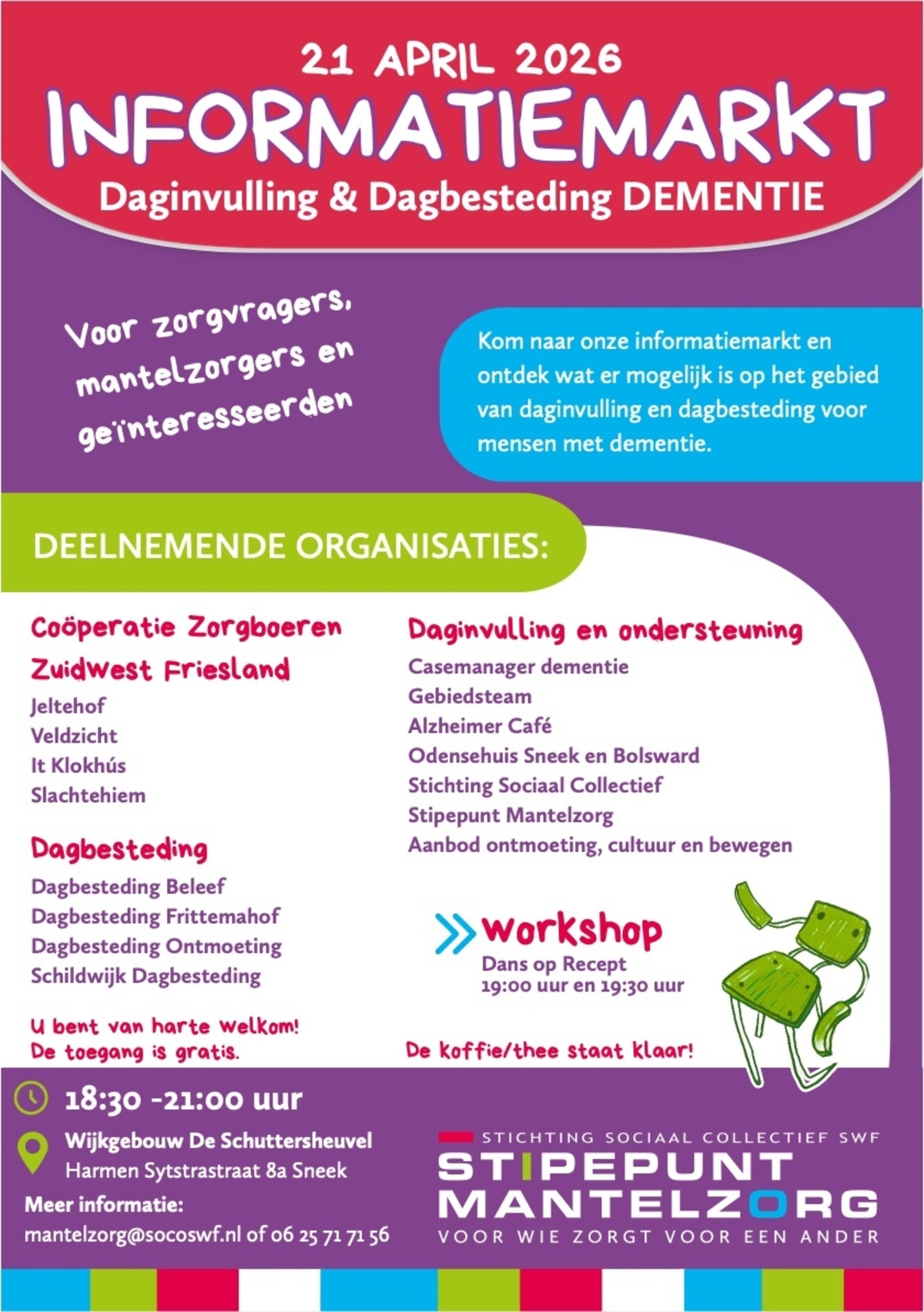 Dinsdag 21 april is de informatiemarkt Daginvulling & Dagbesteding