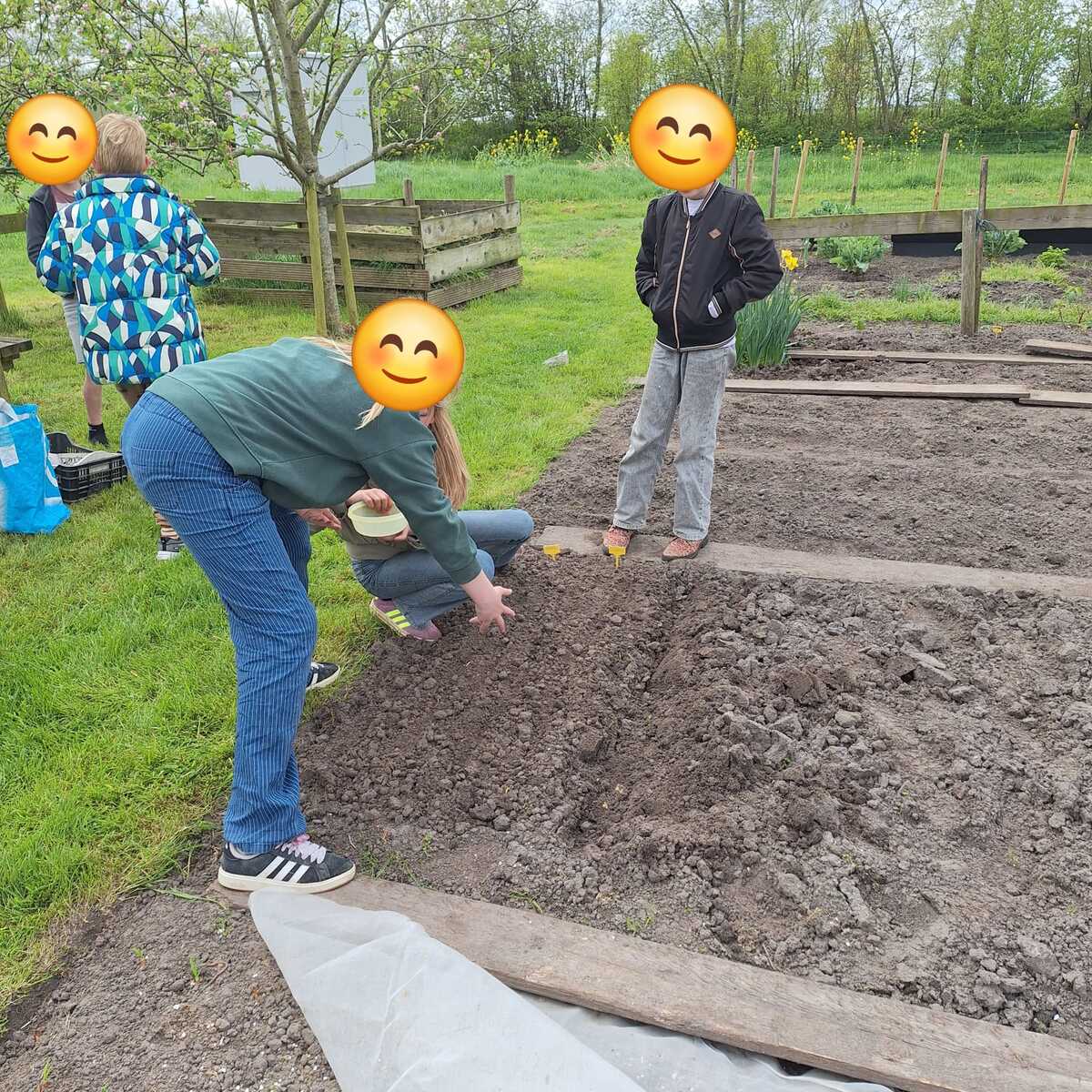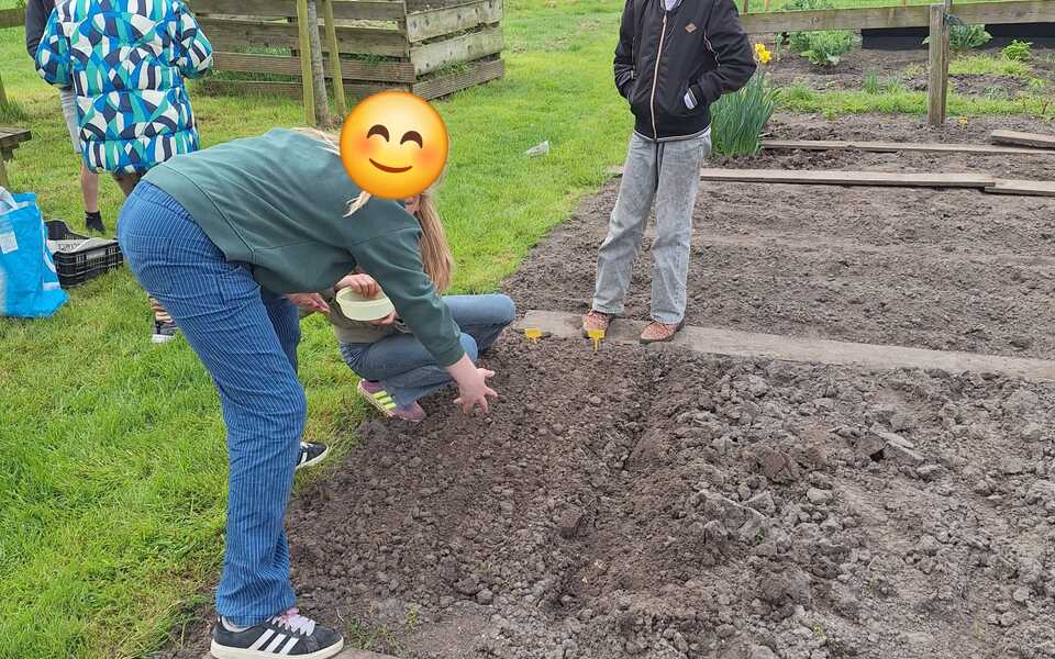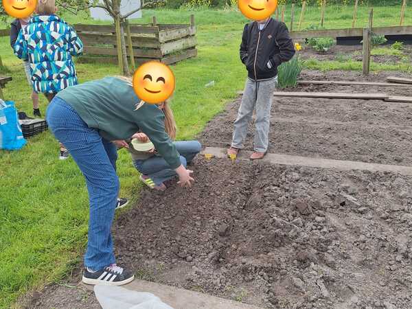 Deze keer zijn er uien geplant, aardappelen gepoot en radijs ingezaaid. De kinderen kregen prei mee naar huis voor in de pasta of de soep. Het groeiseizoen is begonnen.