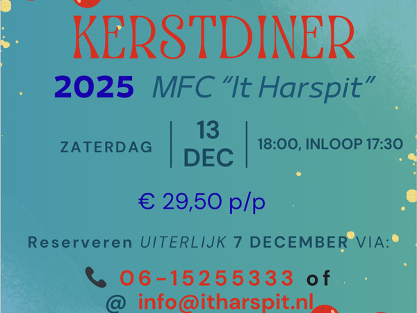 Kosten € 29,50 pp. Reserveren kan tot 7 december via 06-15255333 of info@itharspit.nl.