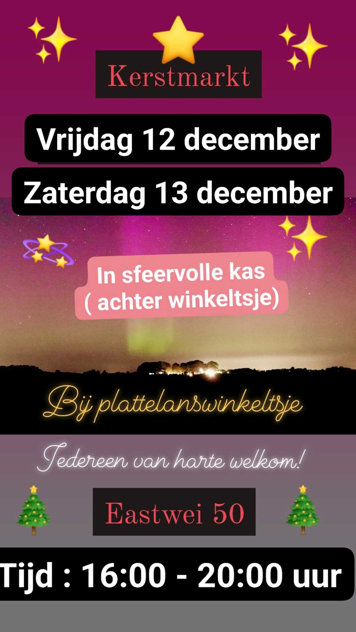 Kom langs voor een gezellige en sfeervolle kerstmarkt in de kas achter het Plattelânswinkeltsje aan de Eastwei. Met heerlijke hapjes en drankjes én de leukste kersttractaties.