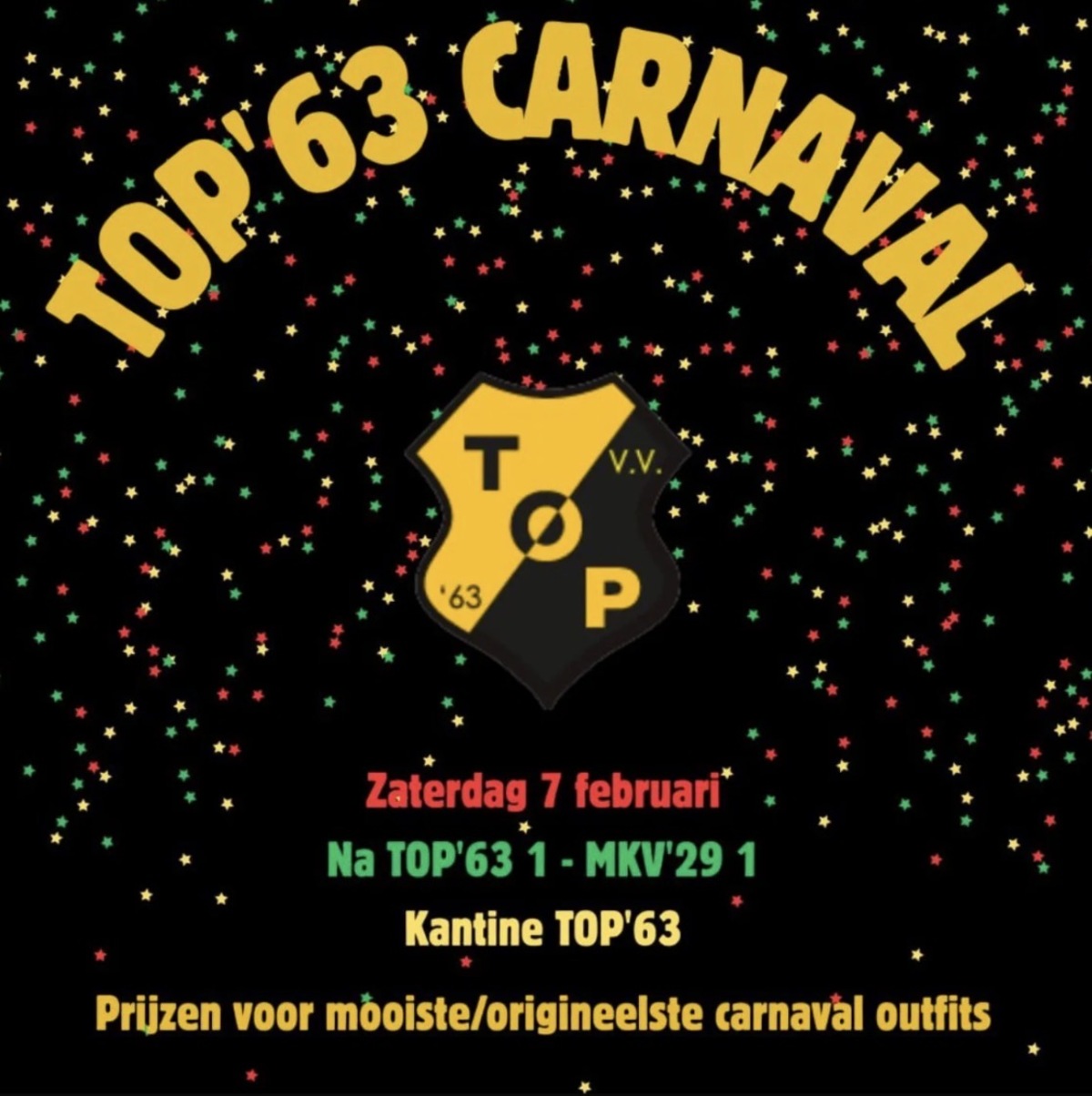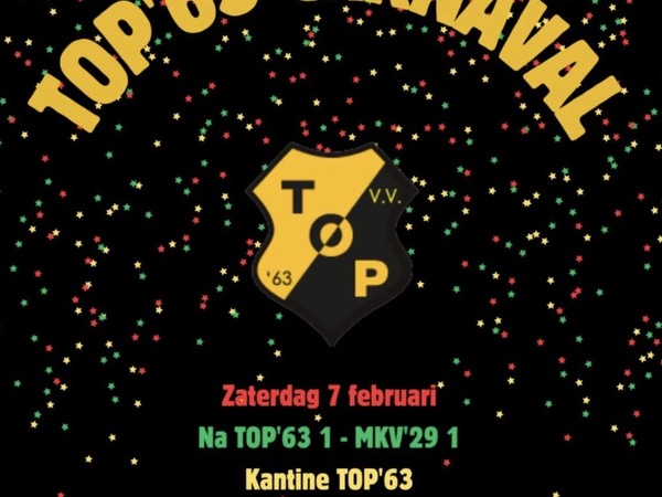 Carnaval in Top en Twel? Jazeker dat kan ook. Zaterdagmiddag is de TOP’63 kantine ondergedompeld in Oeteldonkse sferen voor een overvalst carnavalsfeest. Een weekje eerder dan in het zuiden, dus kom vooral langs in je mooiste carnavalsoutfit! 🥳🎉