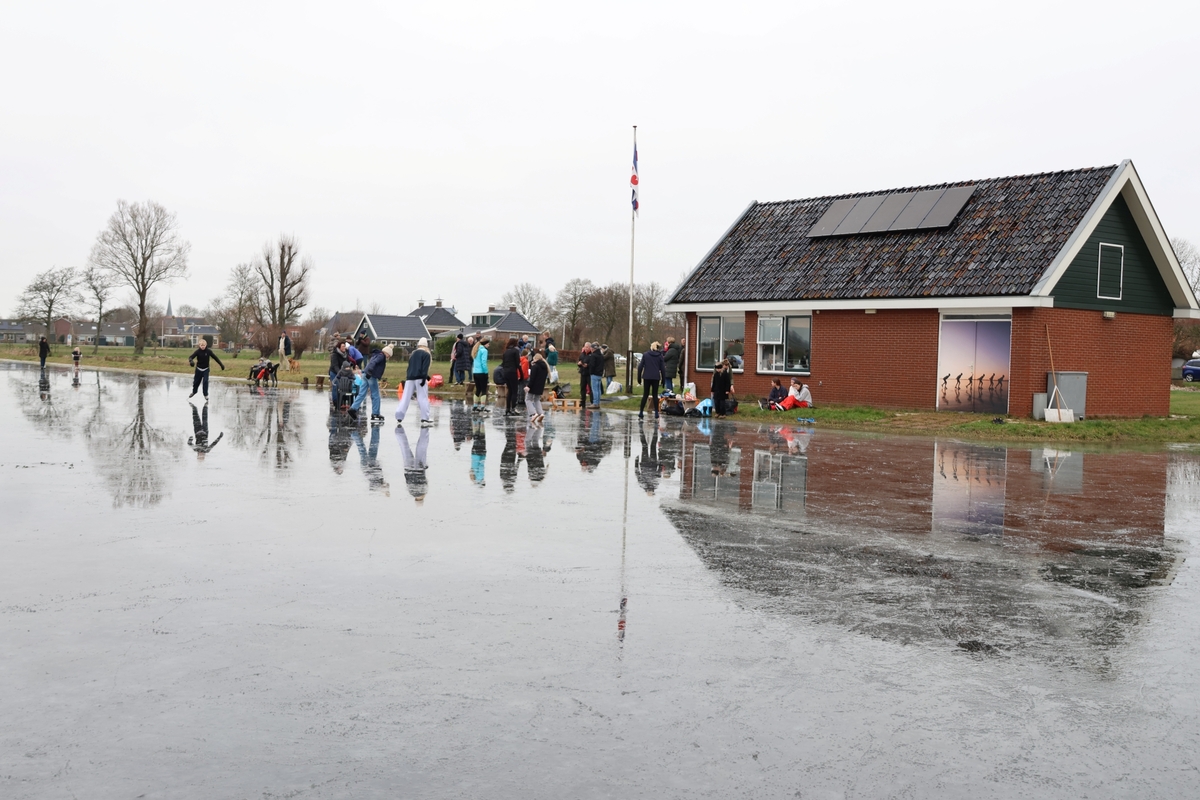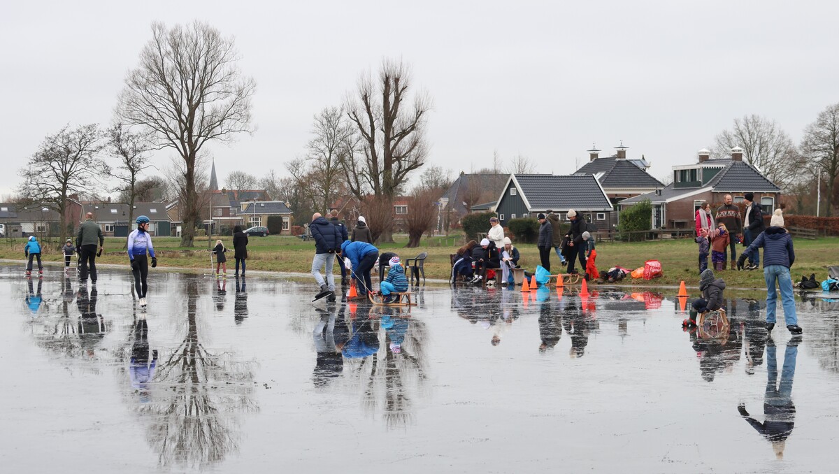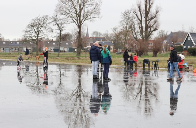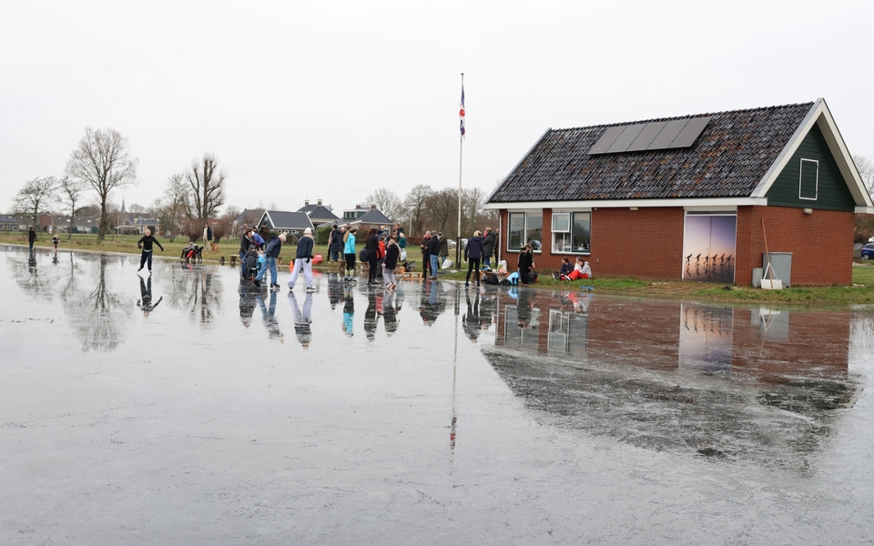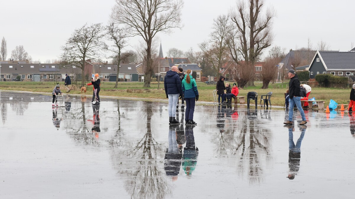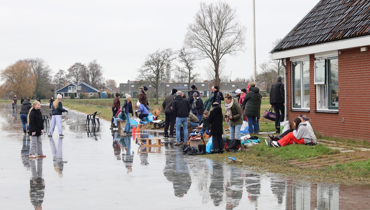 De ijsbaan is wel nat vanwege de inzettende dooi, maar wie dit jaar nog even een paar rondjes wil schaatsen is van harte welkom. Koek en zopie aanwezig. Het kan vandaag nog!