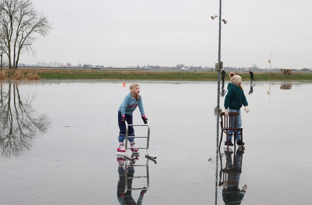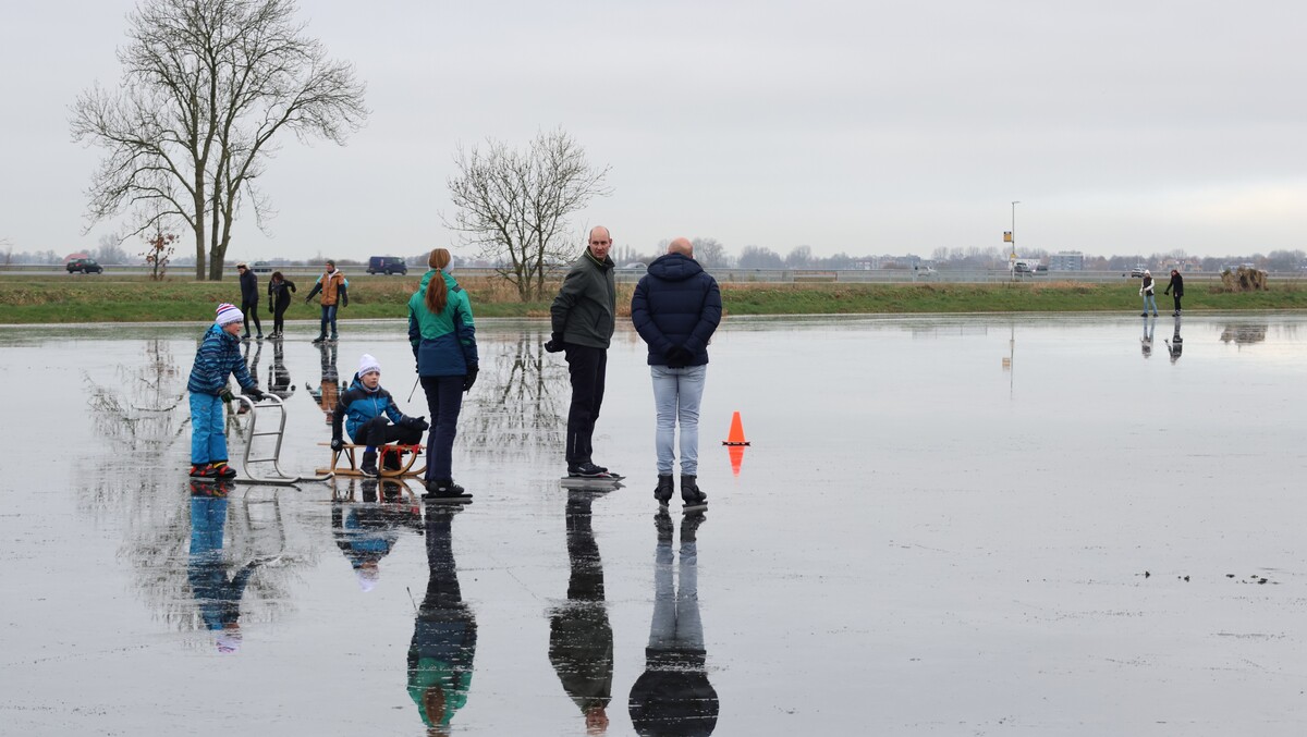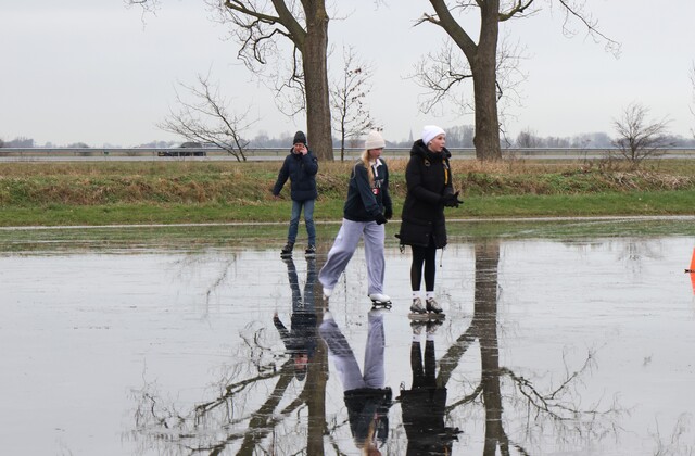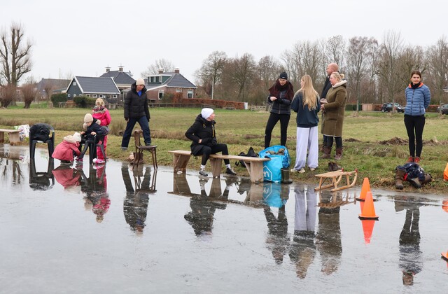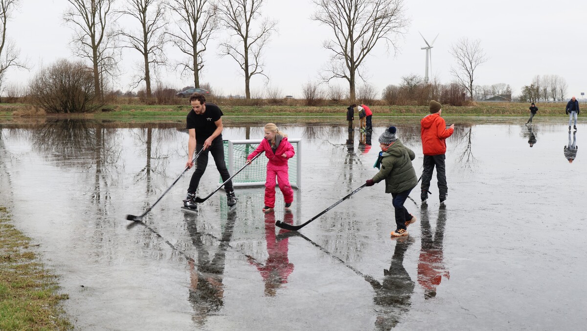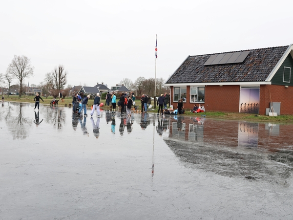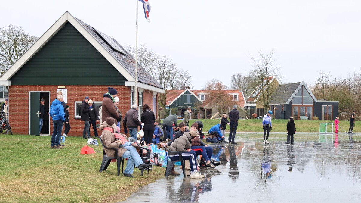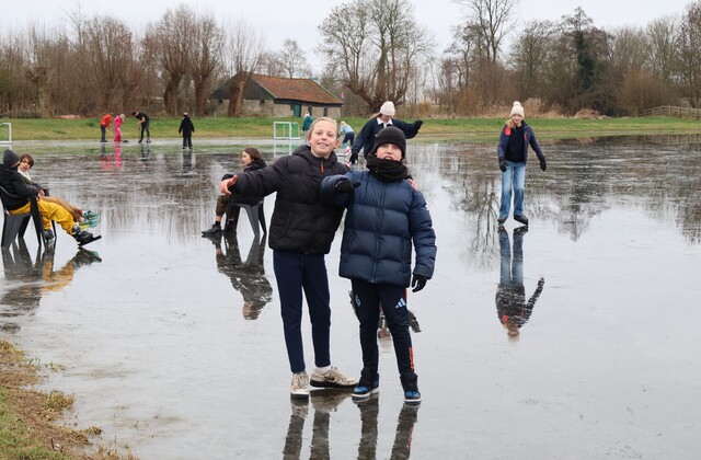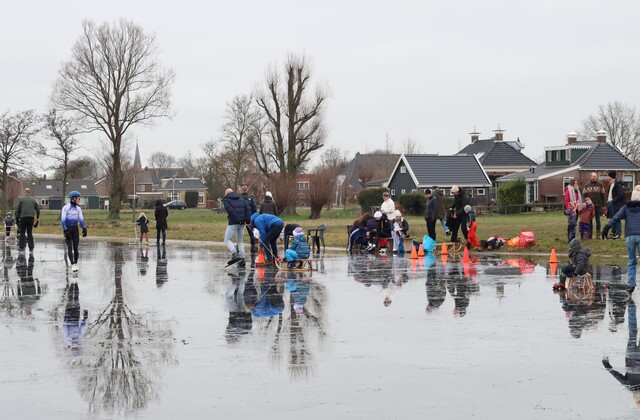 De ijsbaan is wel nat vanwege de inzettende dooi, maar wie dit jaar nog even een paar rondjes wil schaatsen is van harte welkom. Koek en zopie aanwezig. Het kan vandaag nog!
