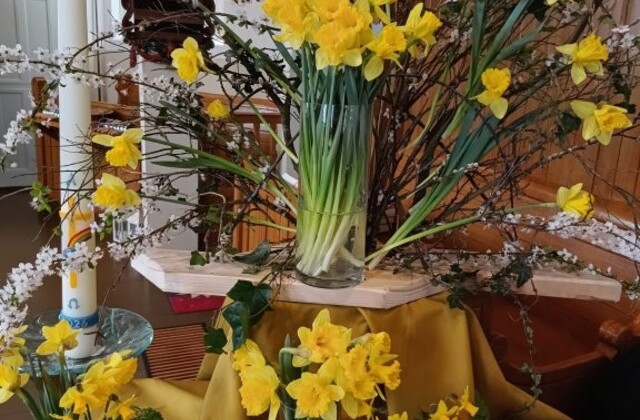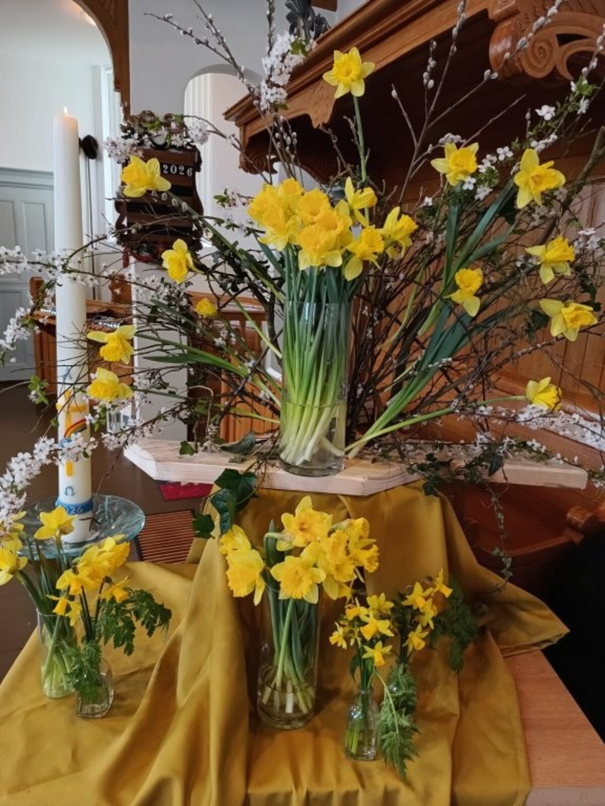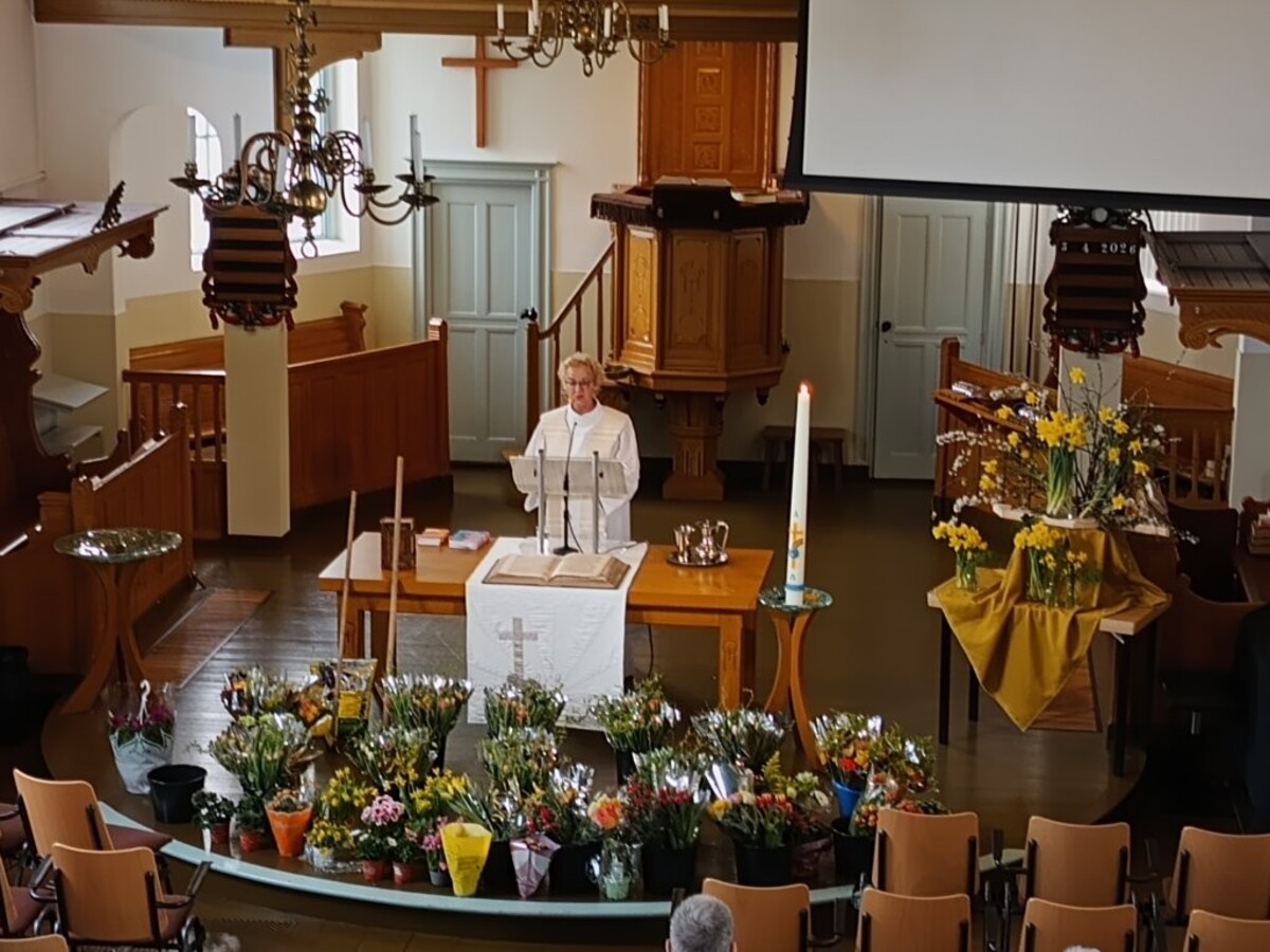 Zondagmorgen 5 april werd de traditionele Paasmorgen-Bloemendienst in de Johanneskerk gehouden. Een prachtige bloementuin ontstond voor in de kerk. Na afloop van de dienst werden, zoals ieder jaar, de bloemen door de gemeenteleden naar zieken en alleenstaanden in onze dorpen gebracht.