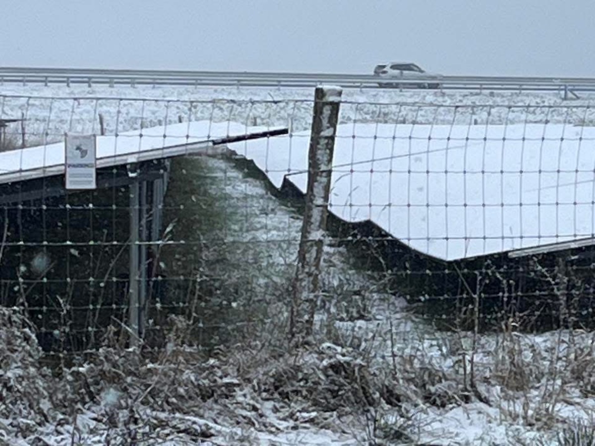 Zonnepanelenpark verzakt, vermoedelijk door sneeuwlast
