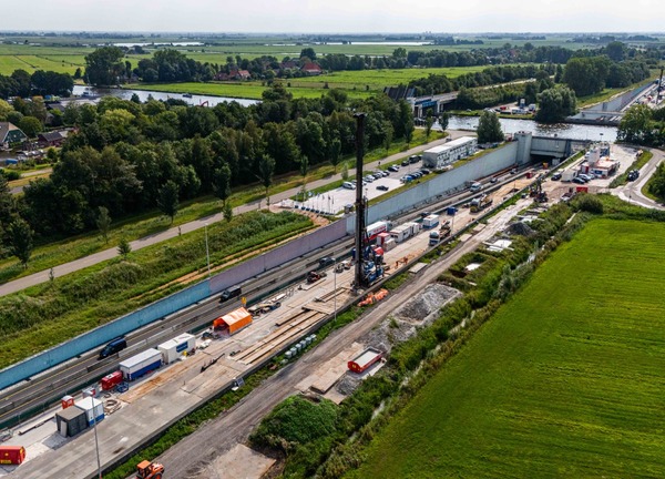 Inmiddels wordt er alweer meer dan een jaar gewerkt aan het herstel van de Prinses Margriettunnel. Van boven ziet dat er momenteel zo uit.