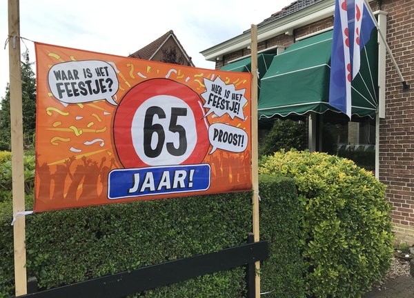 Hielendal neat oan him te sjen noch, mar dochs is it écht wier. Us doarpsbakker Durk Tjalsma is 65 jier. Prima reden dus om him eefkes yn it sintsje te setten.