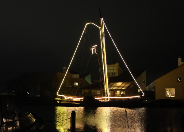 Skûtsje Top en Twel in sfeervol licht voor de kerst