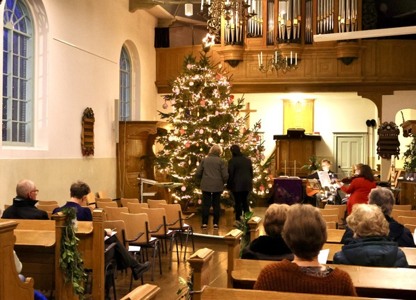 De ynrin mei kryst sing-in justermiddei yn de Johannestsjerke waard goed besocht. De besikers koenen de prachtich fersierde krystbeam besjen, in ymposante beam dy't fol hinget mei krystwinsken...
