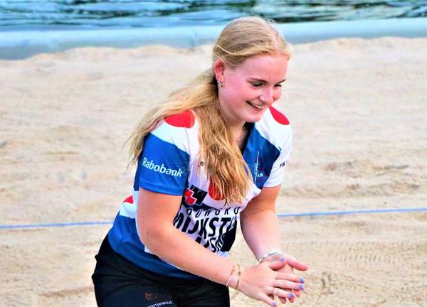 Hanneke Westert pakt de winst by it fierljeppen yn Burgum