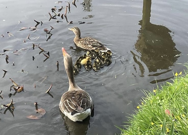 Hâns de Goes (Hans de Gans) hat it op it stuit mar drok mei syn einefreontsjes. Juster wie hy tsjûge fan de earste swimles fan in tolvetal einepykjes.
