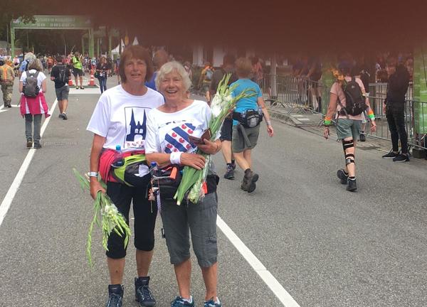 Annie Reitsma en Trijnie Hoekstra ha de Nijmeegse Fjouwerdaagse kuiere en justermiddei kamen de froulju oer de einstreek op de Via Gladiola, it wolbekende einpunt. Diskear moast de Fjouwerdaagse...