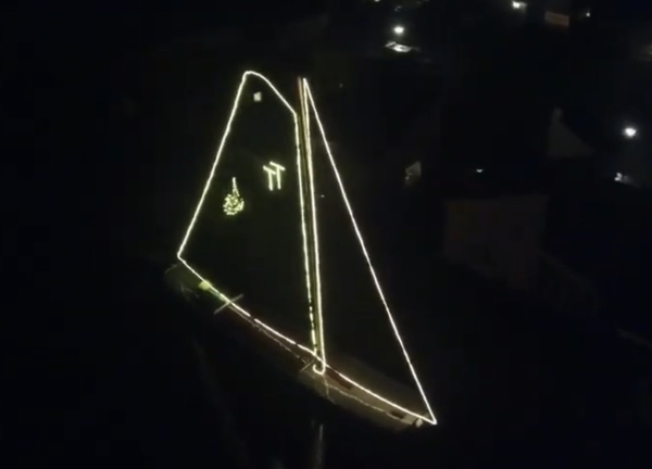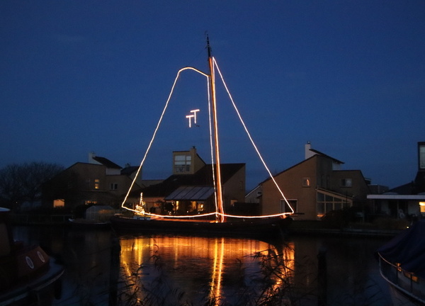 Het is een mooie traditie geworden, het verlichte skûtsje bij de entree van het dorp rond Kerst en Oud & Nieuw. Sinds vorig weekend ligt het skûtsje er weer verlicht bij.