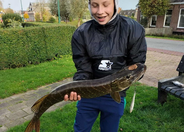 Wat soarte fisk dit is en oft syn mjitte oan de grutte kant is of just normaal, dat kinne we jo net fertelle. Mar wol dat er 88 sm lang is en juster yn ‘e Tsjerkewyk fongen waard troch in...