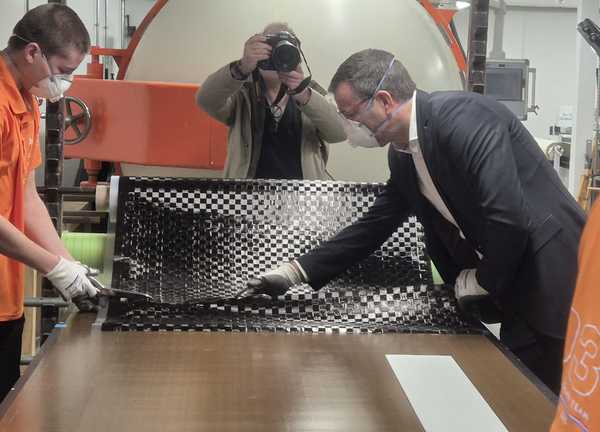Wethouder De Boer opent de productie van zonneauto Nuna 13 bij Paul Dijkstra Composites